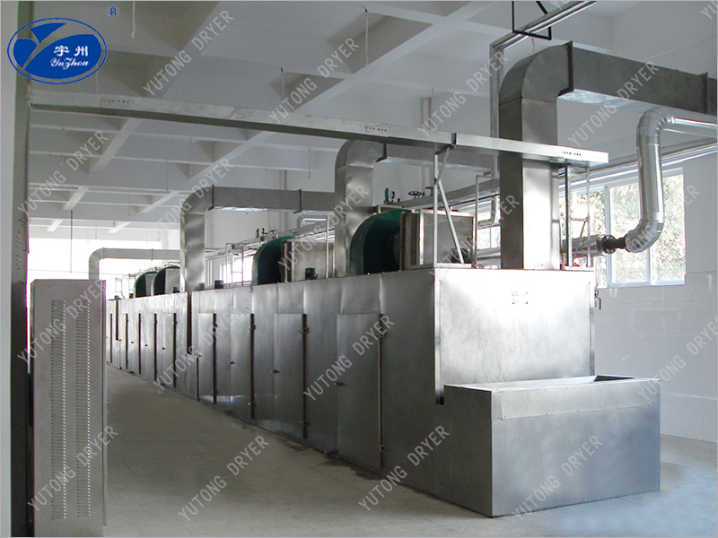 Used for drying sheet, strip, and granular materials with good breathability, especially suitable for dehydrated vegetables, traditional Chinese medicine decoction pieces, and other materials with high moisture content and material temperature not allowed to be high; This series of dryers has the advantages of fast drying speed, high evaporation intensity, and good product quality. For the paste like material of dehydrated filter cake, it can also be dried after granulation or shaping into a rod shape。
