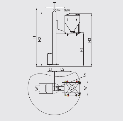 ?? The machine only consists of a column, a rotating chassis, a lifting fork, a hydraulic system, and a control system. When working, push the hopper filled with materials onto the lifting fork, operate the lifting lever, lift the hopper to the feeding height, rotate the column to dock with the feeding equipment, open the discharge butterfly valve, and transfer the materials to the next process equipment.