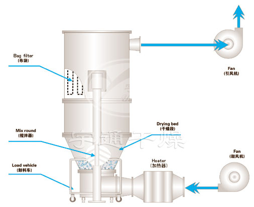 本機主要適用于醫(yī)藥、食品、化工等行業(yè)進行粉末或顆粒物料的干燥。