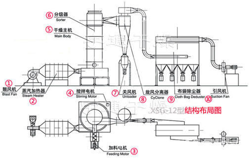 7、干燥室內周向氣速高,物料停留時間短,有效防止物料粘壁及熱敏性物料變質現象,達到高效、快速、小設備、大生產。