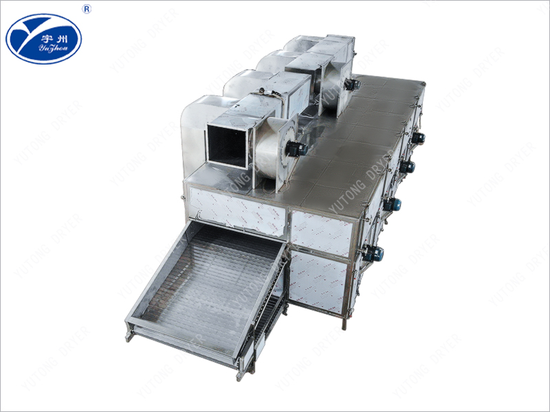 工作時(shí)熱風(fēng)以孔束流由上下同時(shí)噴向輸送帶上的物流,由于噴射氣速高達(dá)15m/s以上,故對(duì)流傳熱的膜極薄,傳熱系數(shù)大,干燥速度快,該設(shè)備用與不透氣類物料時(shí),上面噴射氣流仍返回上面,下面噴出的氣流仍返回下面,在參與循環(huán)。對(duì)透氣性物料氣流束具有強(qiáng)穿透性及在物料內(nèi)部的擴(kuò)散性。使用熱源可以是蒸汽,電,熱風(fēng)爐及燃油煙道氣等。