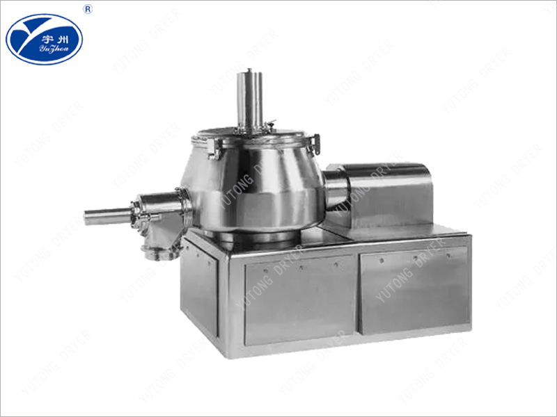 粉體物料與粘合劑在圓筒形容器中由底部混合漿充分混合成濕潤(rùn)軟材,然后由側(cè)置的高速粉碎槳切割成均勻的濕顆粒。