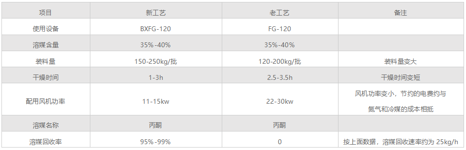 Влажные и горячие газы, содержащие растворитель, высыхают через замкнутую кипящую сушилку и попадают в растворитель в конденсаторном газе конденсатора (коэффициент извлечения растворителя превышает 95%), который может быть как рекуперирован, так и высушен после конденсации и осушения. Рециркулирующие растворители могут быть повторно переработаны, что позволяет сэкономить средства и не загрязнять окружающую среду в результате выбросов выхлопных газов.