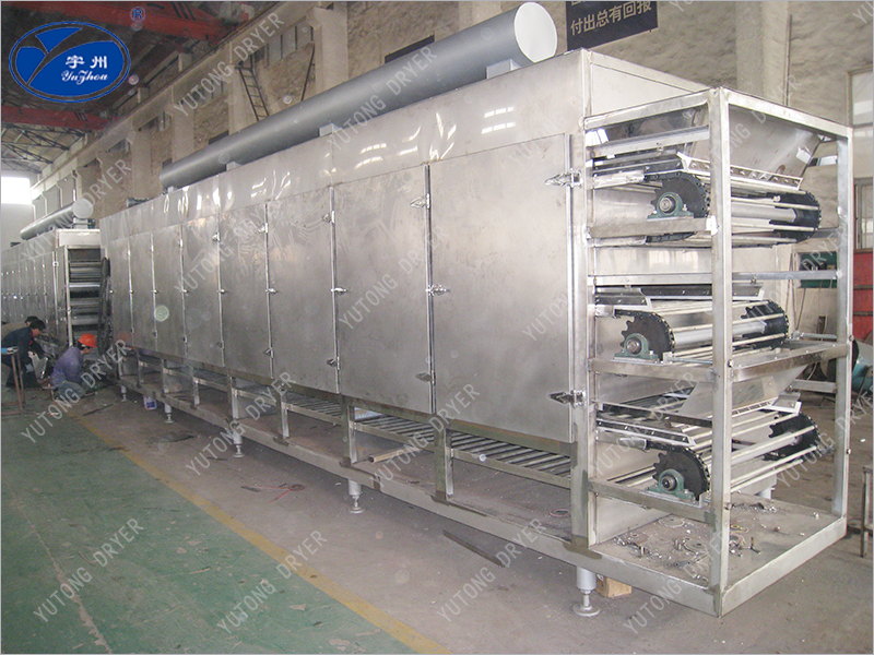 2、Материалы этой серии ленточных сушилок распределены по сетке из нержавеющей стали, а горячий ветер проходит снизу вверх через материал на ленте. Теплообмен равномерный и адекватный, высокая производительность, хорошее качество продукции. Он оснащен холодным мобильным слоем и вращающимся выравнивающим устройством с низкой температурой выбросов, что способствует своевременной упаковке.