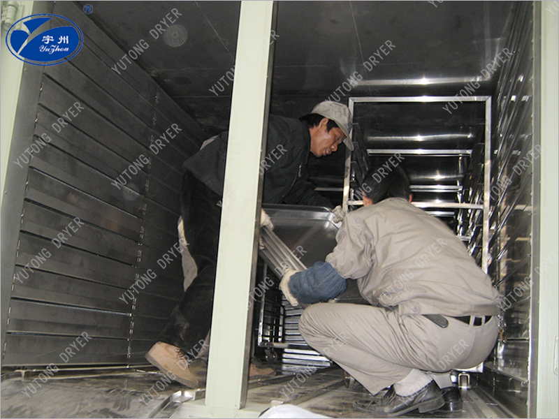 После того, как материал загружается в поддон, поддон и тележка входят в вход туннельной печи и заносятся в туннель приводным механизмом. Скорость печи можно регулировать; Холодный воздух поступает в центробежный вентилятор через вентиляционное отверстие свежего воздуха, нагревается ребристым теплообменником и подается в туннельный ящик при полном контакте с мокрым материалом для теплообмена. Вода из материала испаряется в водяной пар и вместе с горячим воздухом попадает в вентиляционный канал на боковой стороне корпуса. Часть влажного воздуха выходит через осушитель, другая часть вдыхается центробежным вентилятором и перерабатывается; Поскольку содержание воды в материалах в каждом блоке различно, соотношение водоизмещения и циркулирующего воздуха в каждом блоке также различно; Температура горячего воздуха также различна на протяжении всего процесса сушки; Содержание воды в материале в начале сушки относительно велико, и может использоваться более высокая температура горячего воздуха; Содержание воды в материалах после сушки относительно низкое, и можно использовать более низкую температуру горячего воздуха.